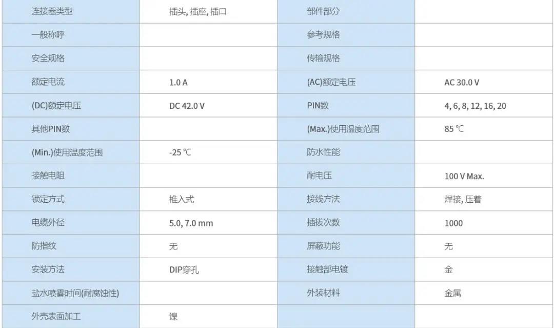 特點 1 超小級高密度圓形連接器 2 具有良好操作性的推拉鎖 3 EMI對策設(shè)計 4 支持Cat.5e(1Gbps)高速以太網(wǎng)※ 5 豐富的選型 ※傳輸性能可根據(jù)線纜?引腳尺寸?結(jié)線方法而改變, 線束后確認實力。 超小級
