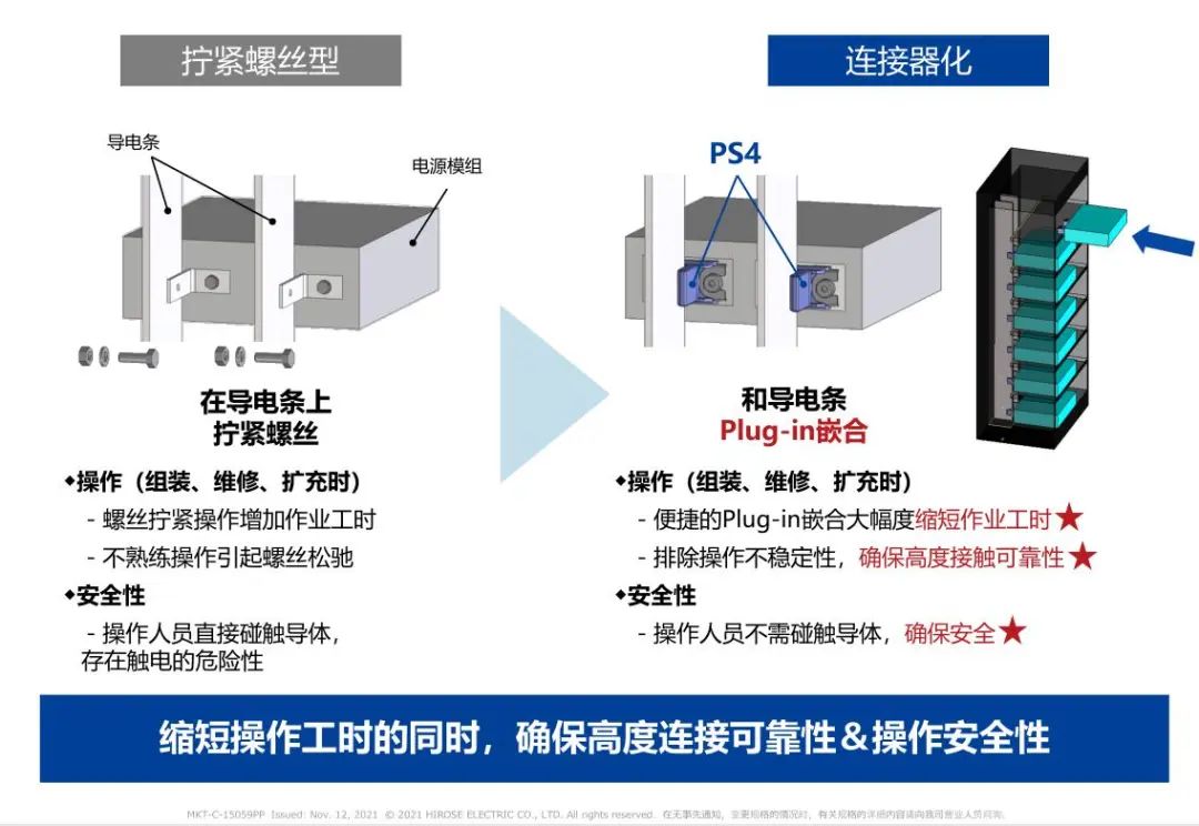 1. Plug-in連接形式, 提高組裝、維修以及擴充模組時的操作性, 同時提高操作的安全性。
